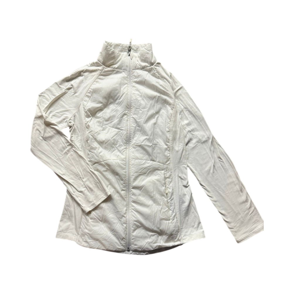 Kevyt vetoketjullinen urheilutakki, pitkähihainen ja pystykaulus.