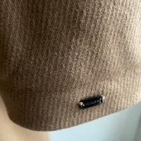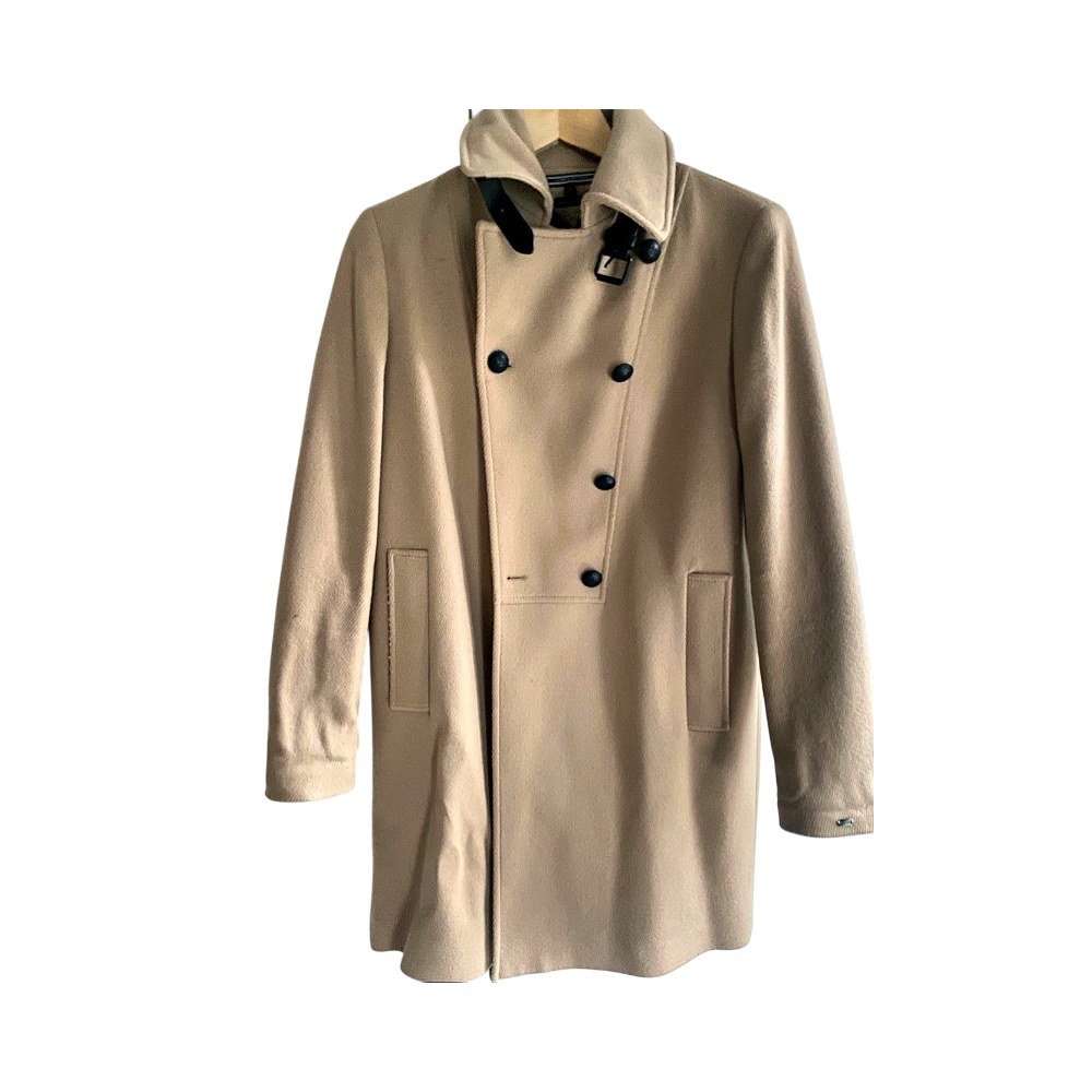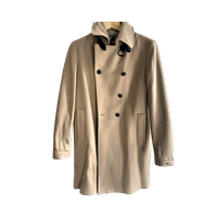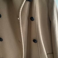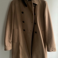 Camel/ beige TH wool blend (80%) double breasted coat. Dark blue lining.