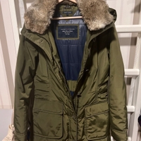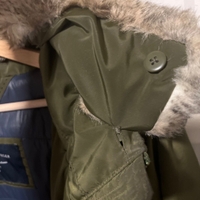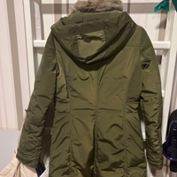 Pari kertaa käytetty parkatalvitakki, irrotettava karvakaulus, vetoketju ja napit . Väri oliivinvihreä koko S