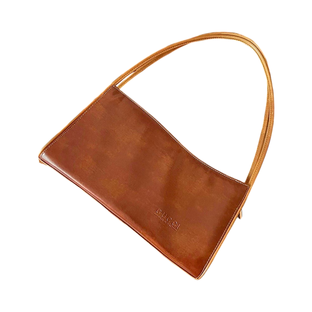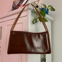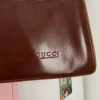 Vintage Gucci baguette bag in a brown/cognac color with lighter brown leather on the sides and straps. Some wear on the interior (see last picture) and a small piece of the wire is poking out on the outside (second last picture). Otherwise the outside leather is in great condition!
