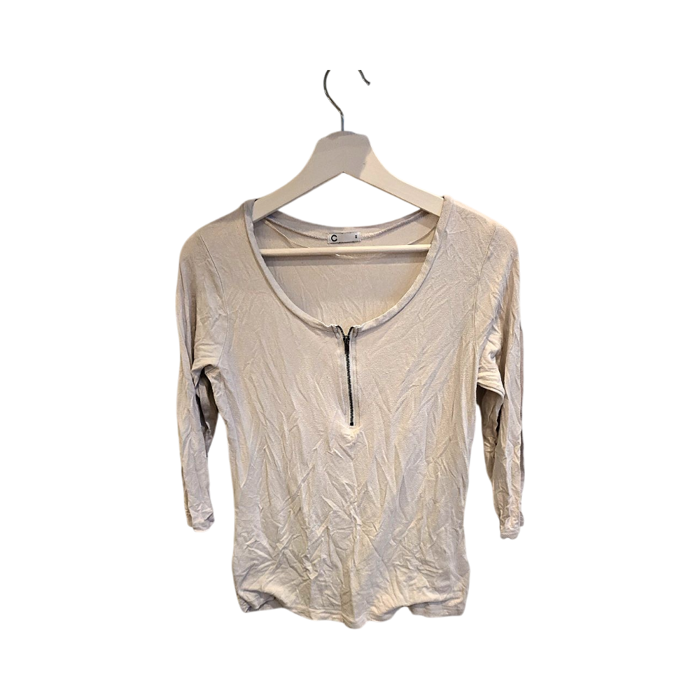 Ohut valkoinen pitkähiha, vetoketjuyksityiskohta edessä.