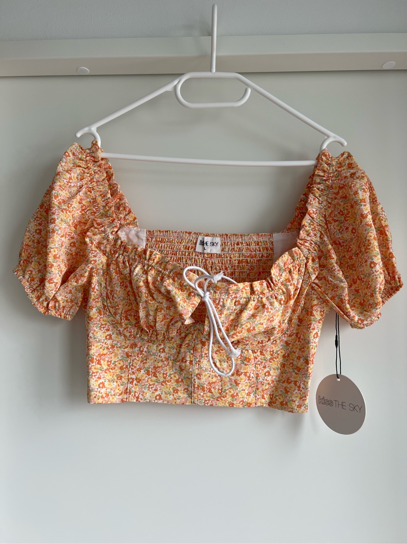 Uusi Kiss the Sky Tie Front Crop Top Orange Floral. Sivussa vetoketju.