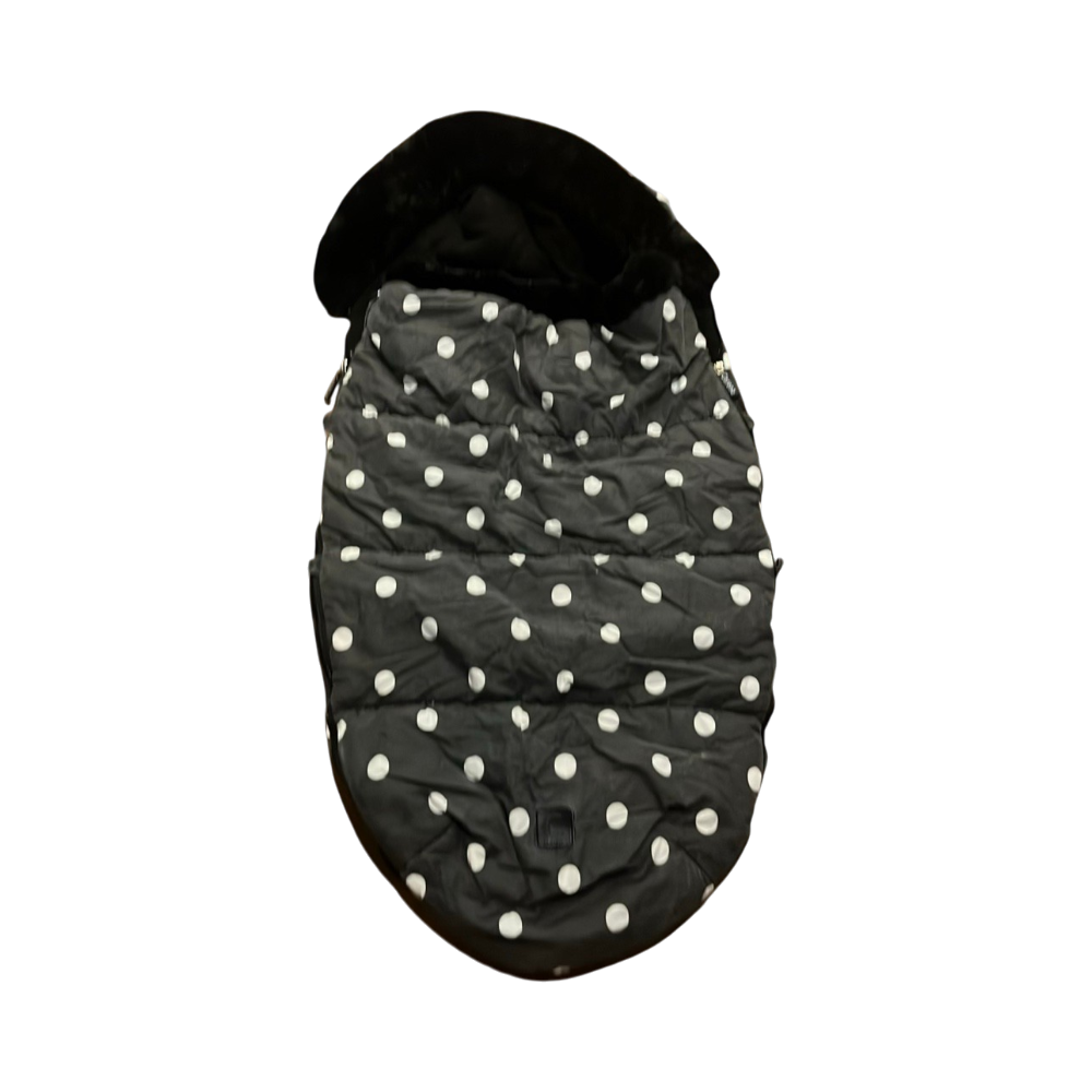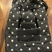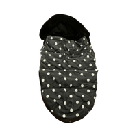 Pehmeä ja lämmin pilkullinen makuupussi rattaisiin.