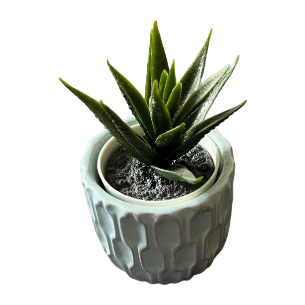 Small decorative ceramic pot with faux succulent.