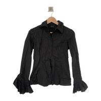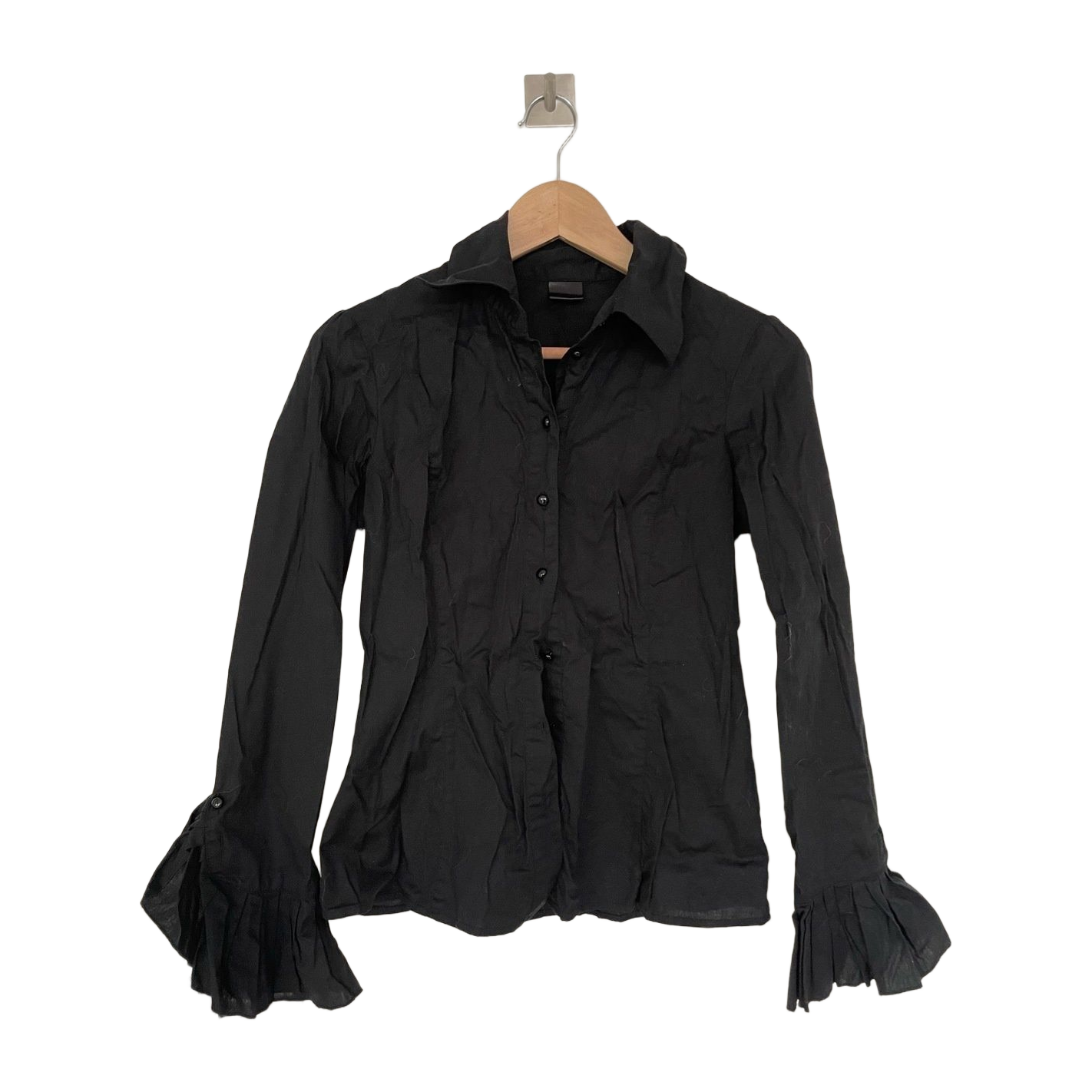 Leveät röyhelöhihat. Koko S. Anteeksi, kun kuvissa paita vähän ryppyinen kun ollut kaapin pohjalla, mutta silittämällä saa uuteen malliin!