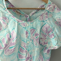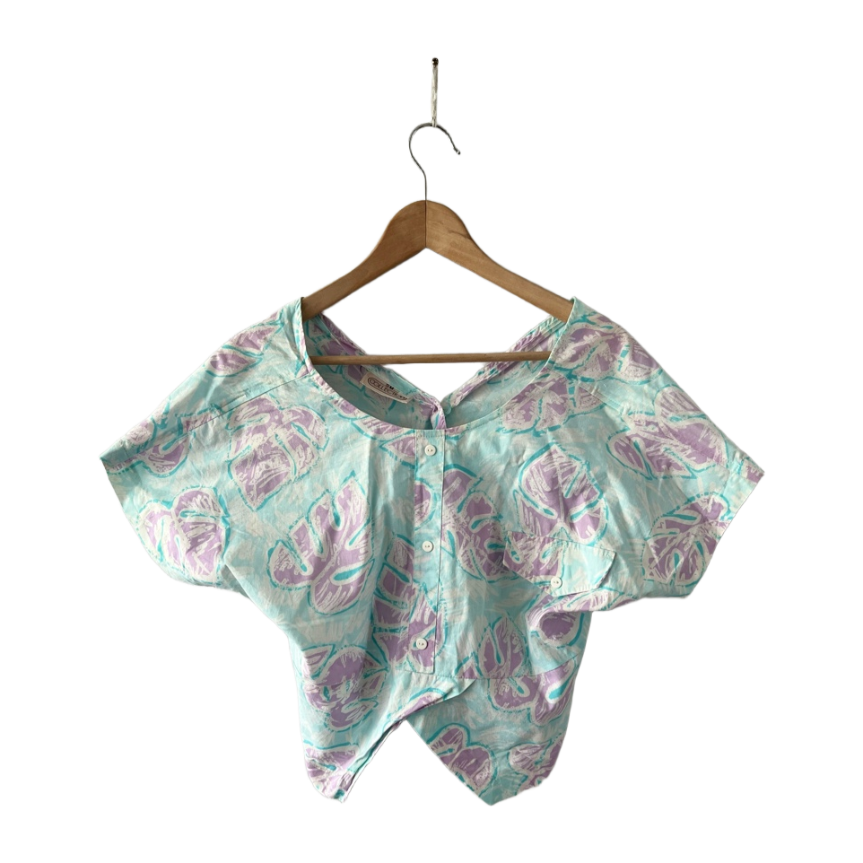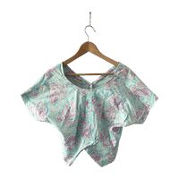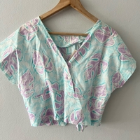 Kaunis kesäinen lyhyt paita, vintagea. One size, mutta vastaa mielestäni kokoa s/m. Pituus 46cm ja kai kai mitta 50cm. Puuvillaa