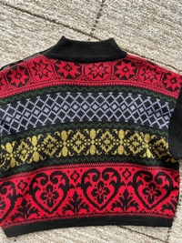 Pehmoinen Vintage neule, väljä lyhyt malli. Koko l, pituus 44cm ja kai kai mitta 54cm. Ei kutita