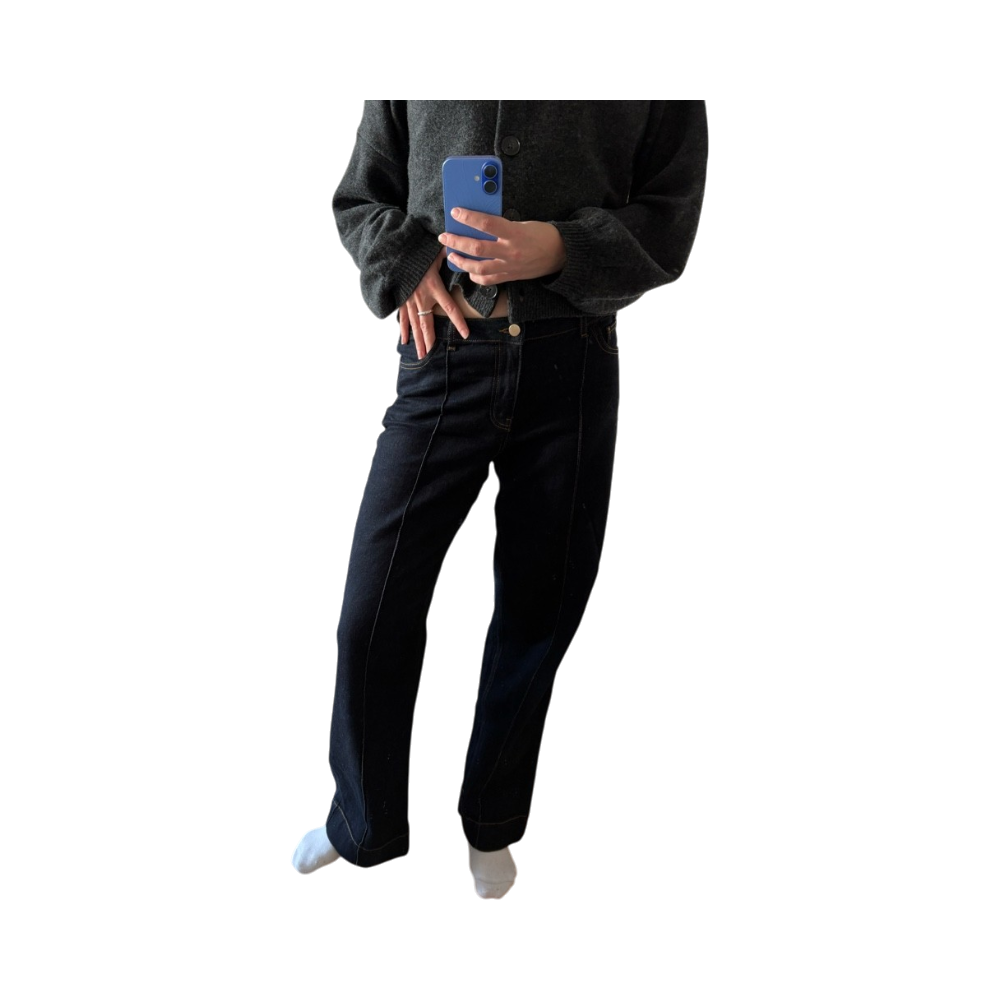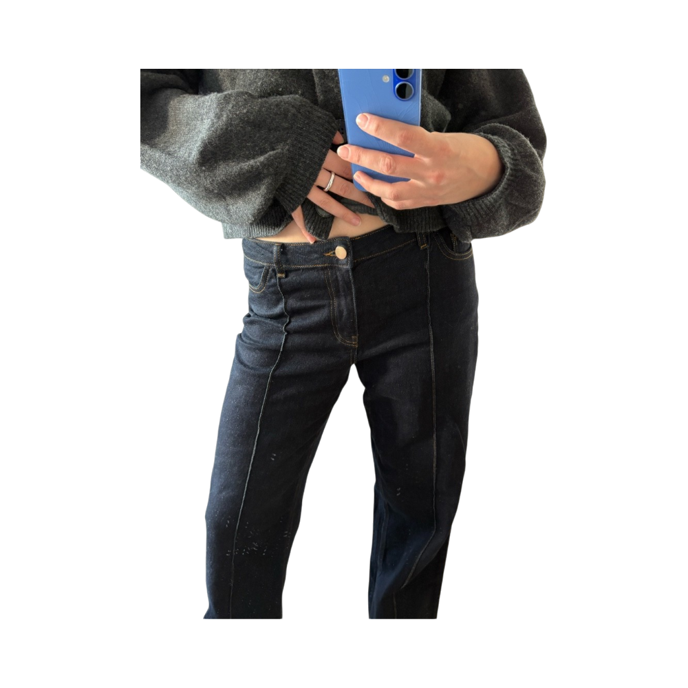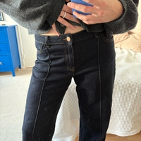 Tummat, suoralahkeiset naisten farkut näkyvillä saumoilla. Edessä ommellut vekit. Ostettu Köpiksestä, ei sopineetkaan mulle. Täysin uudet, lapus vaan poistettu.