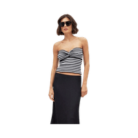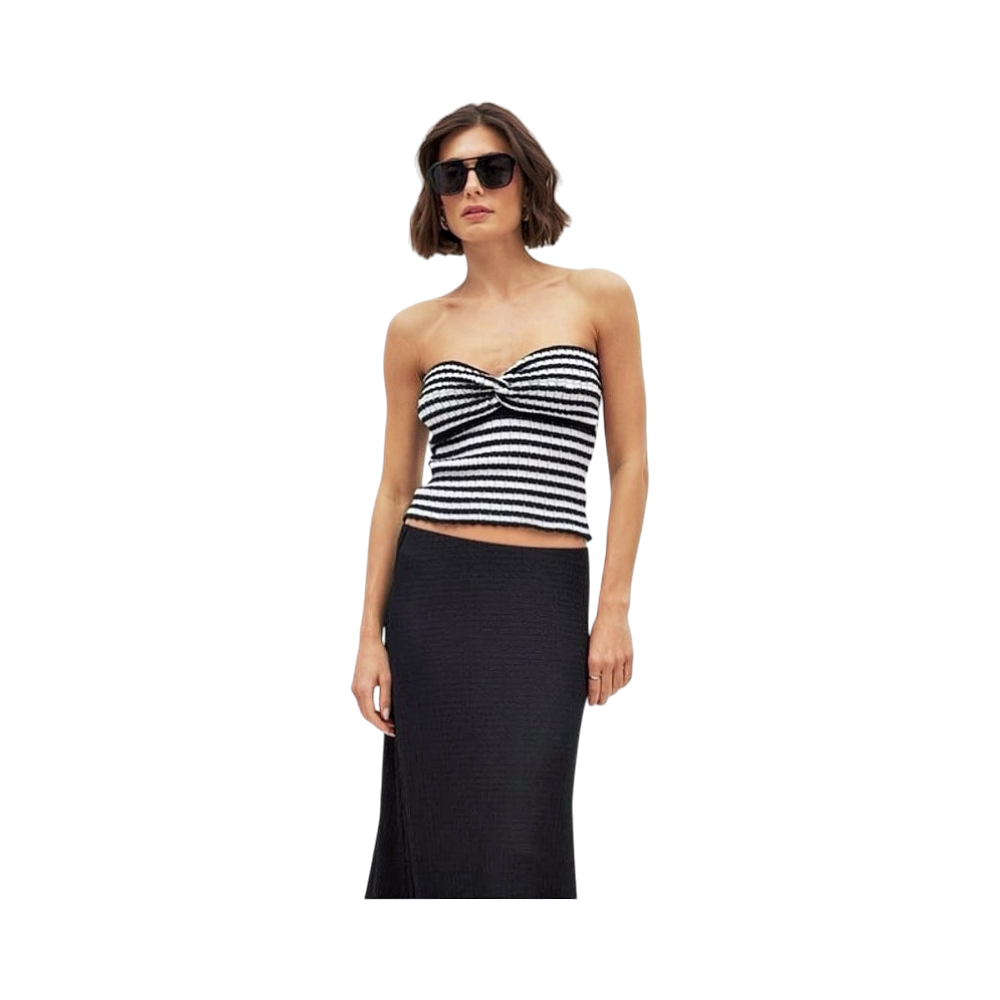 Raidallinen mustavalkoinen tube top, käännetty yksityiskohta edessä. Kokoa S, upouusi ja kaunis toppi.