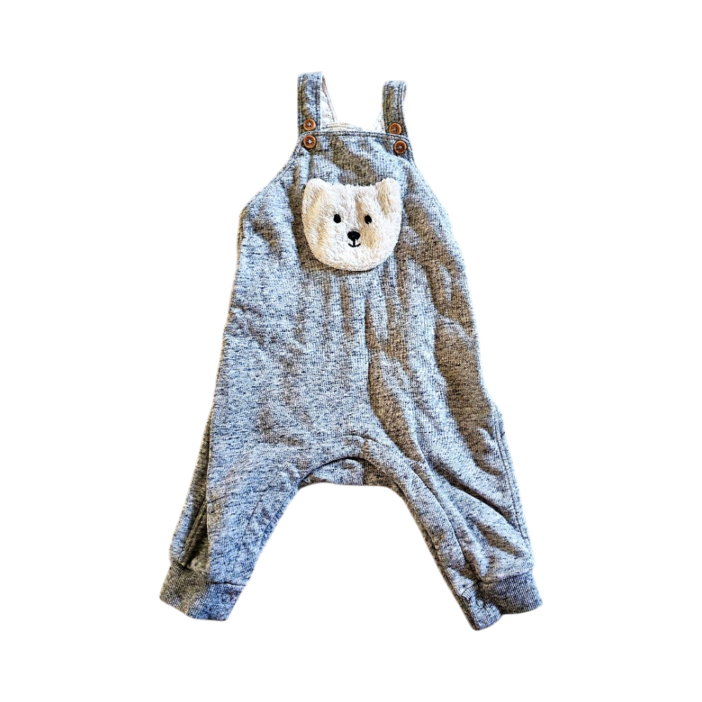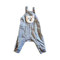 Pehmeä haalari, karvainen nalle edessä.