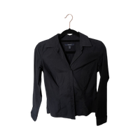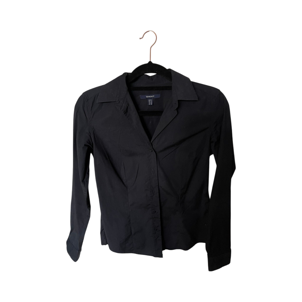 Classic black long-sleeve shirt, slim fit, wardrobe staple.