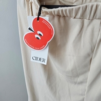 Cider beiget / nudet leveät housut, koko m. Käyttämättömät, hintalaput kiinni. Joustovyötärö. Ei näy läpi. Ihanan hulmuavat