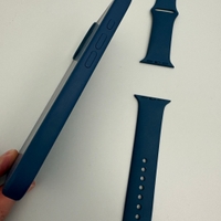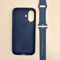Iphone-kotelo ja Apple Watch -ranneke hyvässä kunnossa. Sininen iPhone 16 Magsafe silikonikuori on sileä ja pehmeä ja kestää hyvin vesipesua. Pinta tuntuu mukavalta kädessä. Suojaa puhelinta naarmuilta ja kolhuilta. Kameran linssit suojattu hyvin muovikauluksella. Sisäpuoli mikrokuitua. Kamerasäädin toimii saumattomasti safiirilasipinnoitteen ansiosta. MagSafe lataus toimii nopeasti ja vaivattomasti. Valmistaja Apple.
