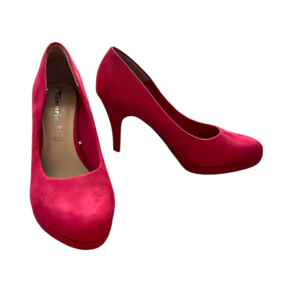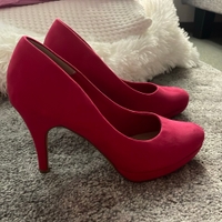 Korkeakorkoiset pinkit kengät, hyvässä kunnossa. Kerran käytetyt. Itselle olivat liian isot.