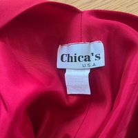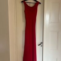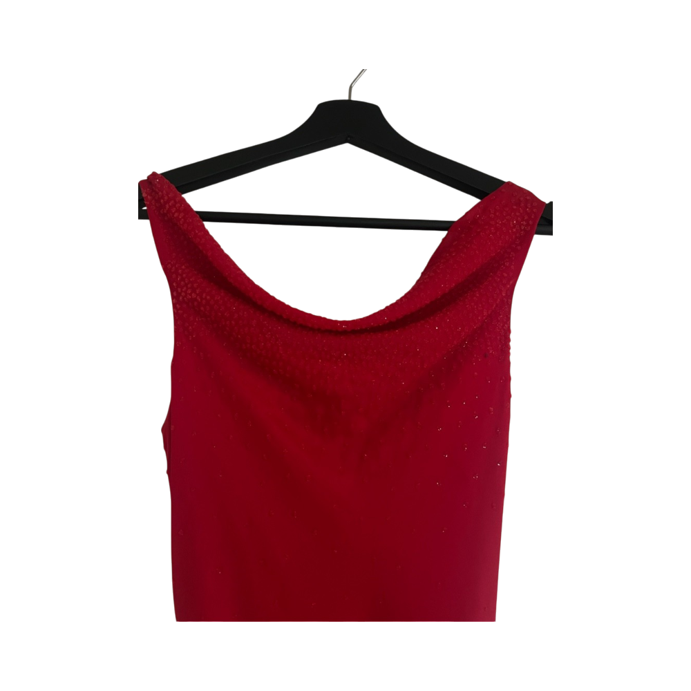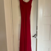 Pitkä, kimalteleva ja vartaloa myötäilevä punainen vintage iltapuku. Made in USA. Kokolapussa lukee M, mutta mielestäni enemmän S.