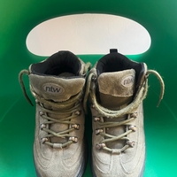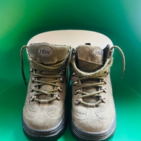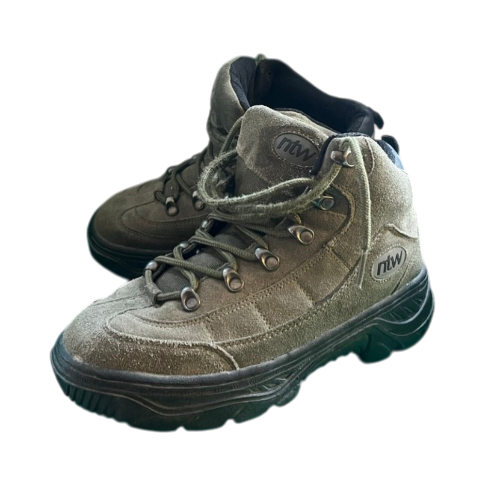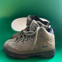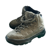 Naisten khaki-sävyiset vaelluskengät, tukevat ja kulutusta kestäneet.
