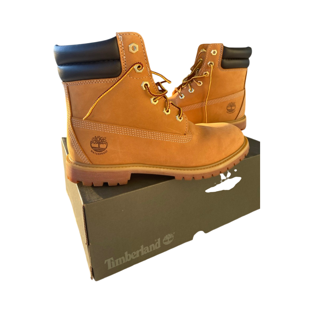 Wheat-nahkaa, vedenpitävät 6" saappaat, naisten koko 9.5. Ollut jalassa kerran, melkein kun uudet!