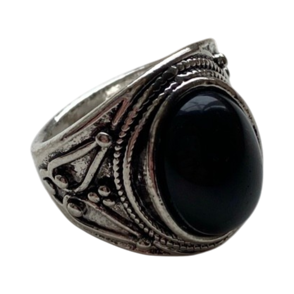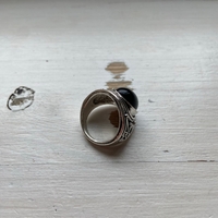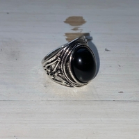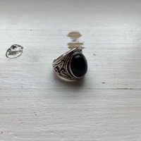 Kaunis sormus mustalla kivellä (ei aitoa hopeaa) viimeisestä kuvasta näkee tarkempaa kokoa