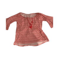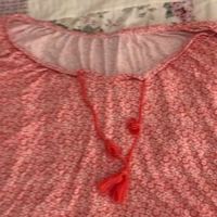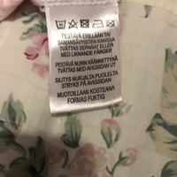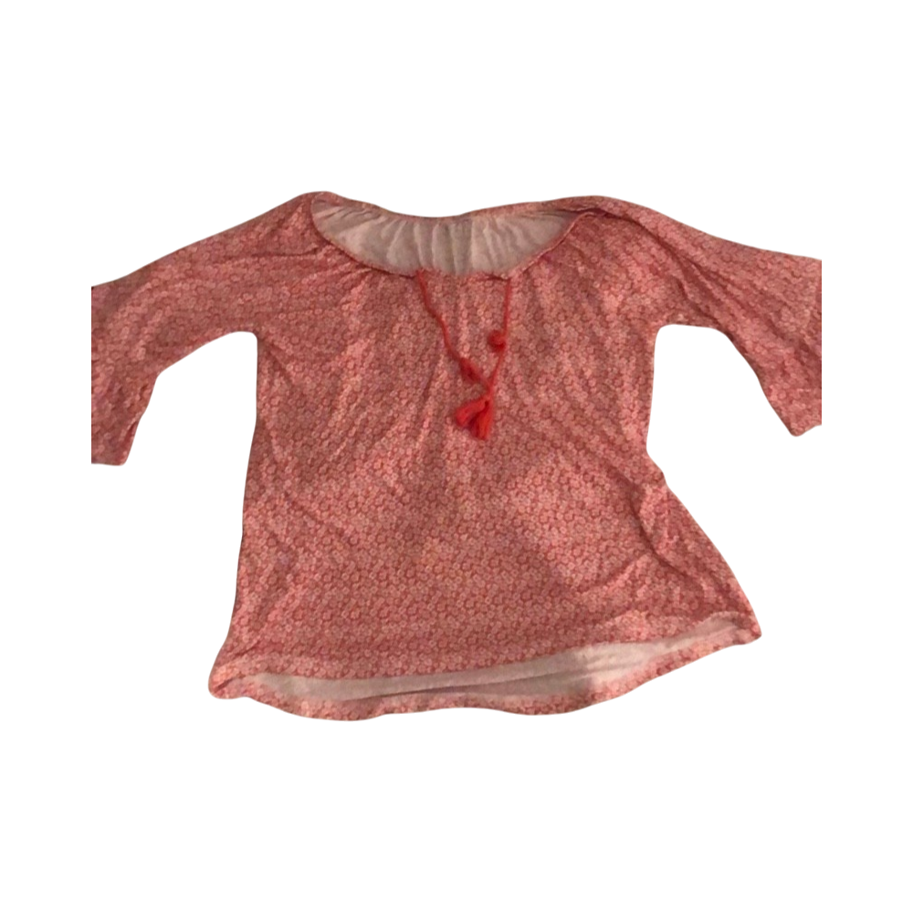 Kevyt, kukkakuvioinen 3/4-hiha tunika, koristehapsut edessä.