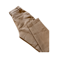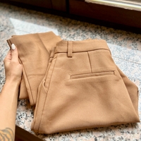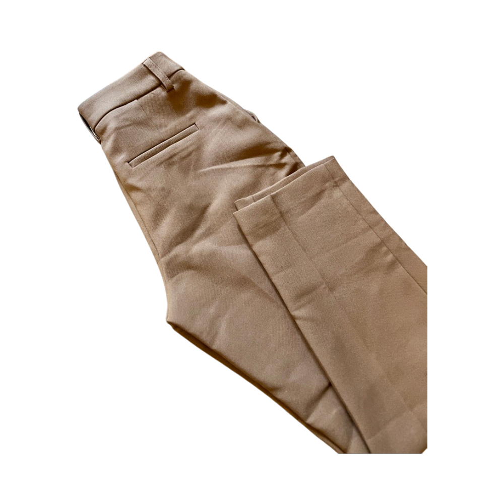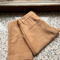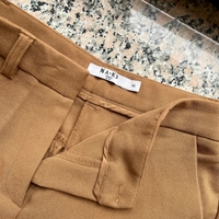Korkeavyötäröiset, siistit ruskeat housut, vyölenkit.