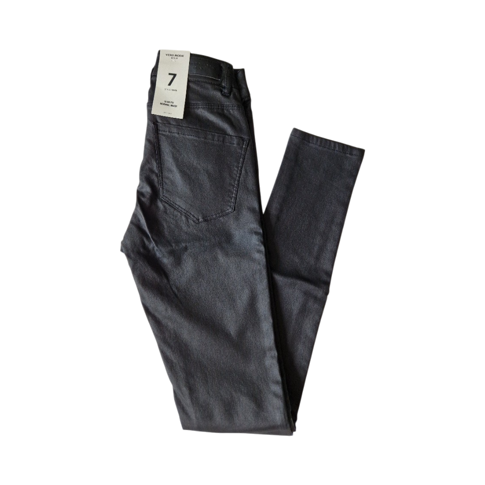 Uudet Vero Modan mustat VMSeven NW SS Smooth Coated Pants Noos -nimiset housut koossa XXS/30.