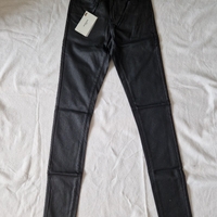 Housujen malli on "Slim fit", ja housuissa on hieman "vahamainen", keinonahkaa muistuttava pinta.