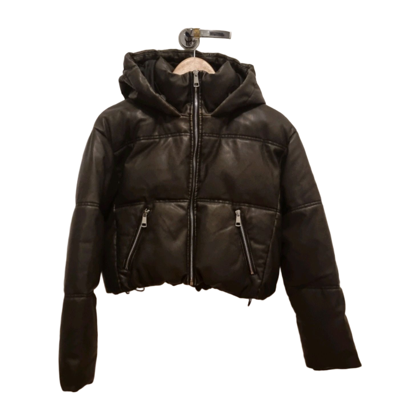 Leather effect short puffer anorak Takki, 1 kertaa päällä.