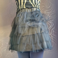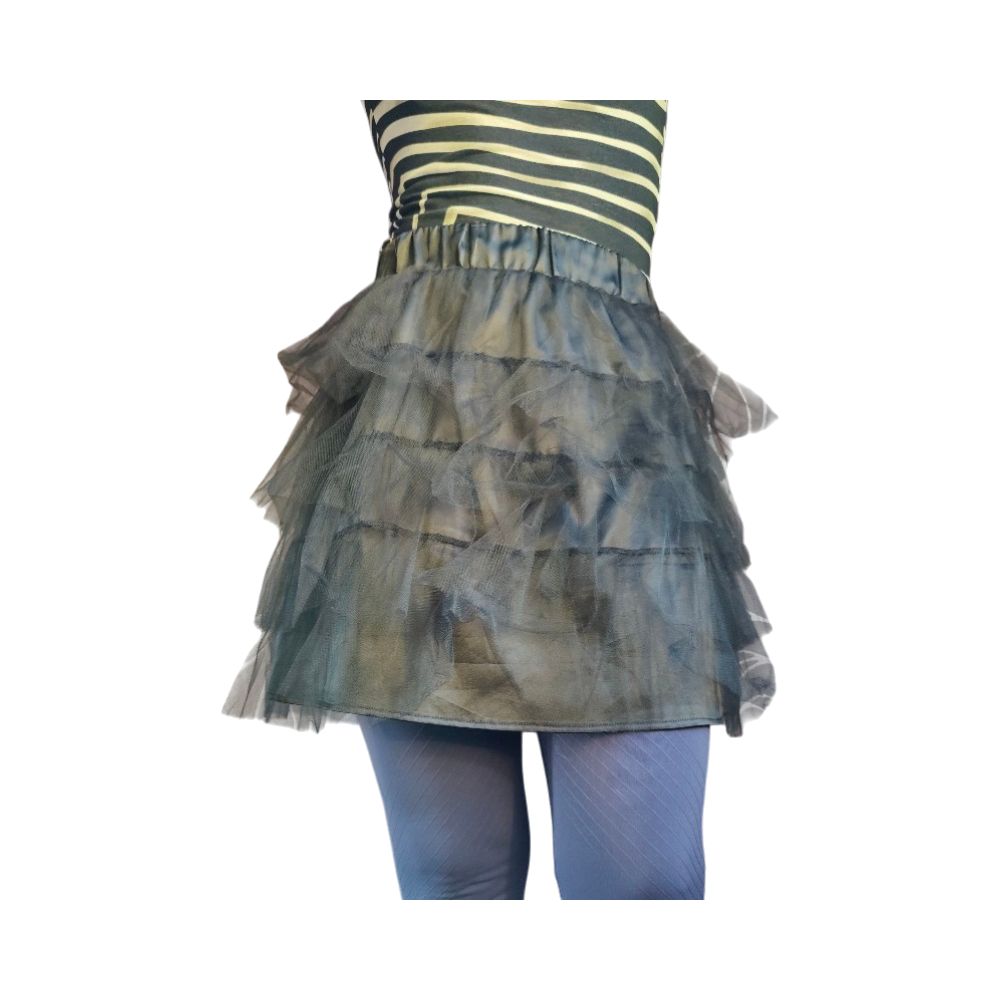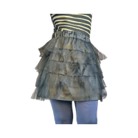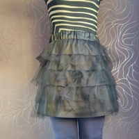 Musta lyhyt hame, frillat tylliä. Kuminauhavyötärö noin 69 cm tasolla mitattuna. Materiaalitetoja ei ole