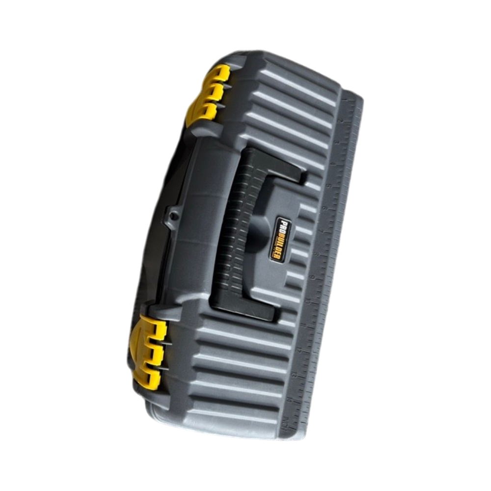 Kompakti muovinen työkaluarkku irrotettavalla tarjottimella.