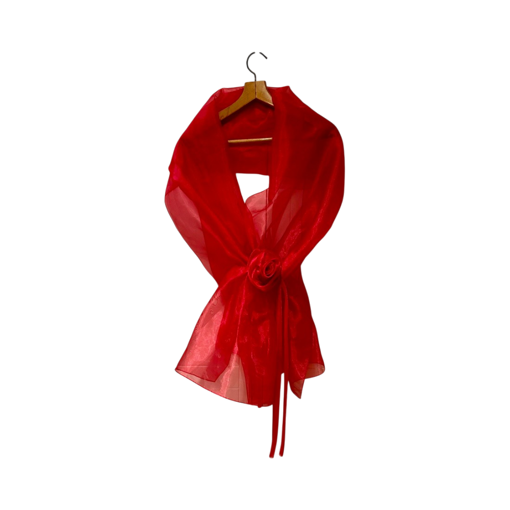 Kevyt ja läpikuultava juhlahuivi, koristeellinen ruususolki.