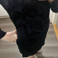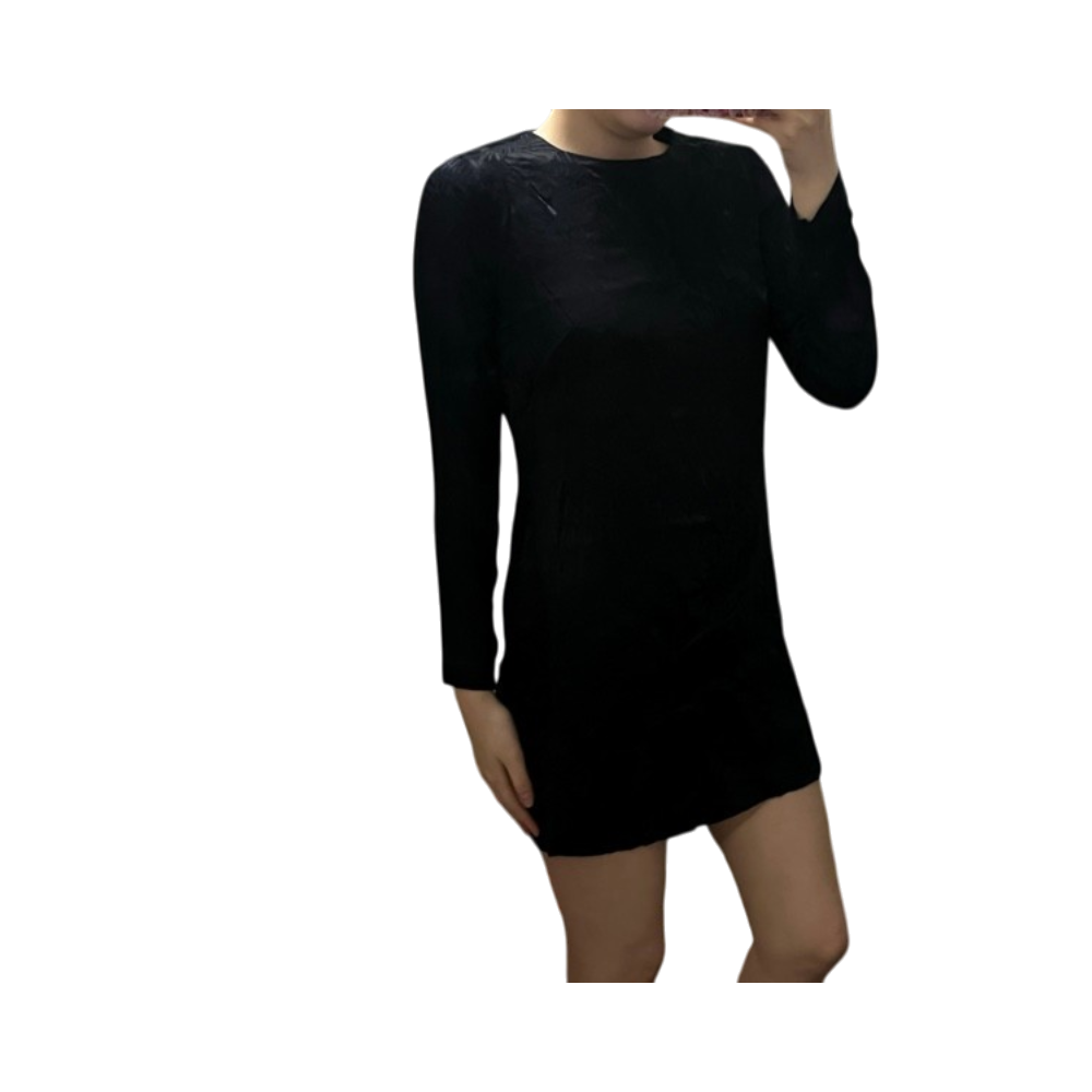 Mustaa pitkähihainen minimekko, kuvioitu pinta.