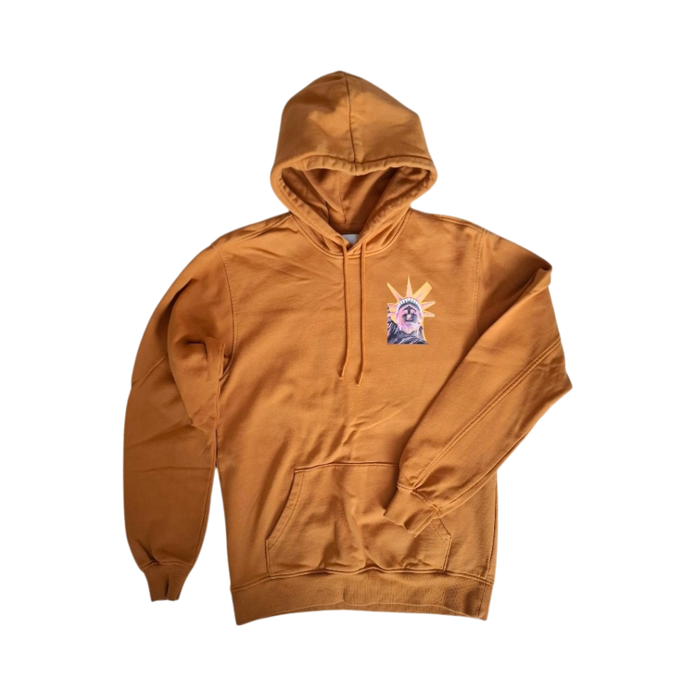 🧡 Sinapinkeltainen college - huppari vapauden patsas printillä.