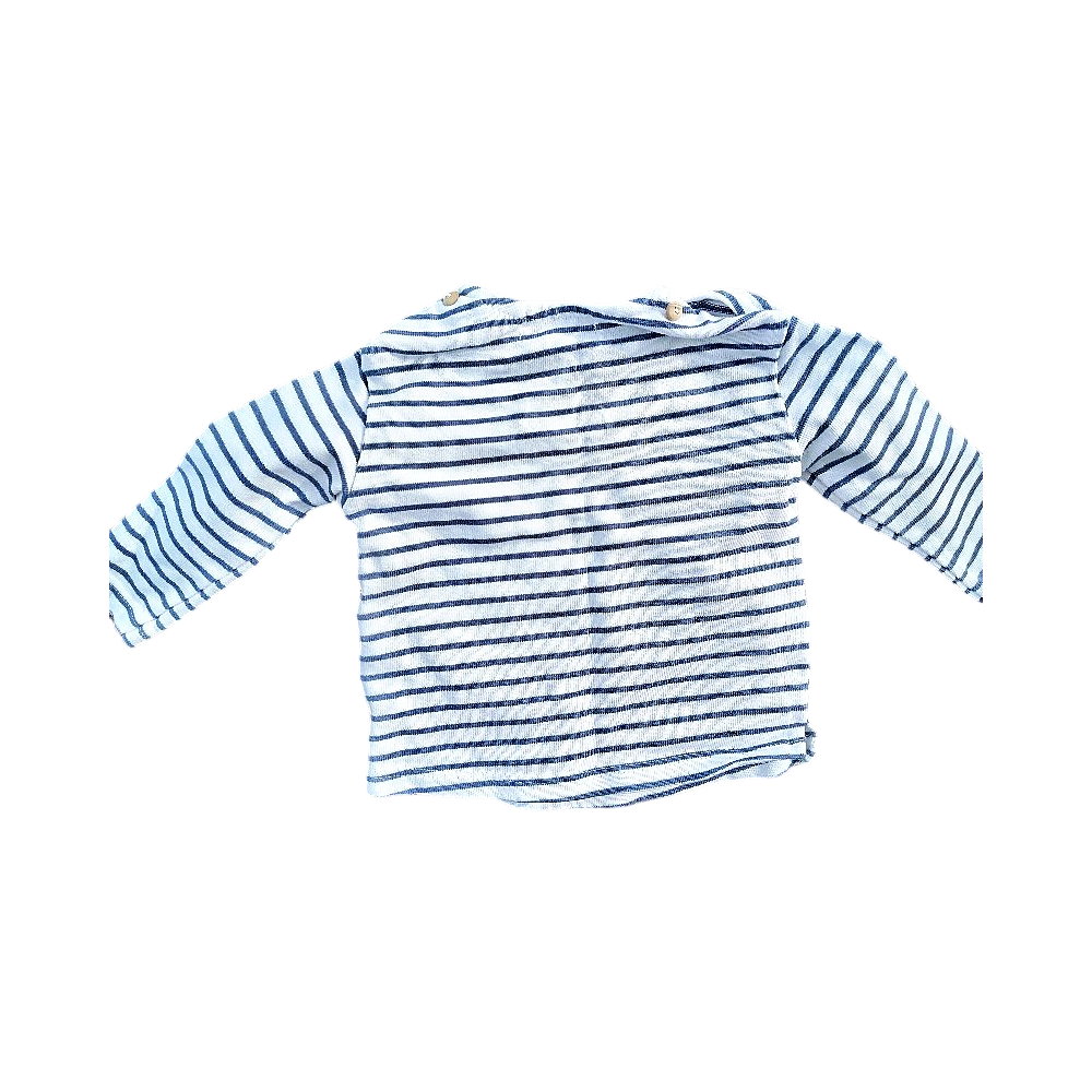 Pehmeä pitkähihaisen raitapaita, koko 6–9 kuukautta.