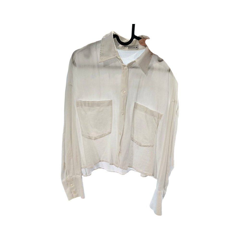 Valkoinen kevyt kauluspaita, pidetty ainoastaan kerran. Lyhyt malli.
