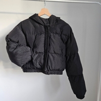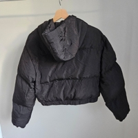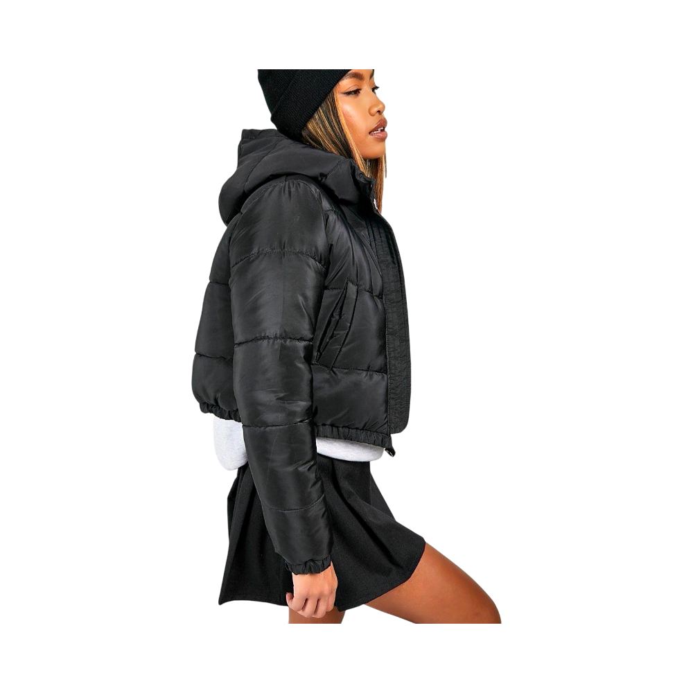 Boohoo puffer jacket, cropped jacket, black puffer, hooded jacket, short coat, winter jacket, lightweight puffer, casual outerwear, streetwear, trendy, urban style, warm coat, padded jacket, everyday jacket, oversized style