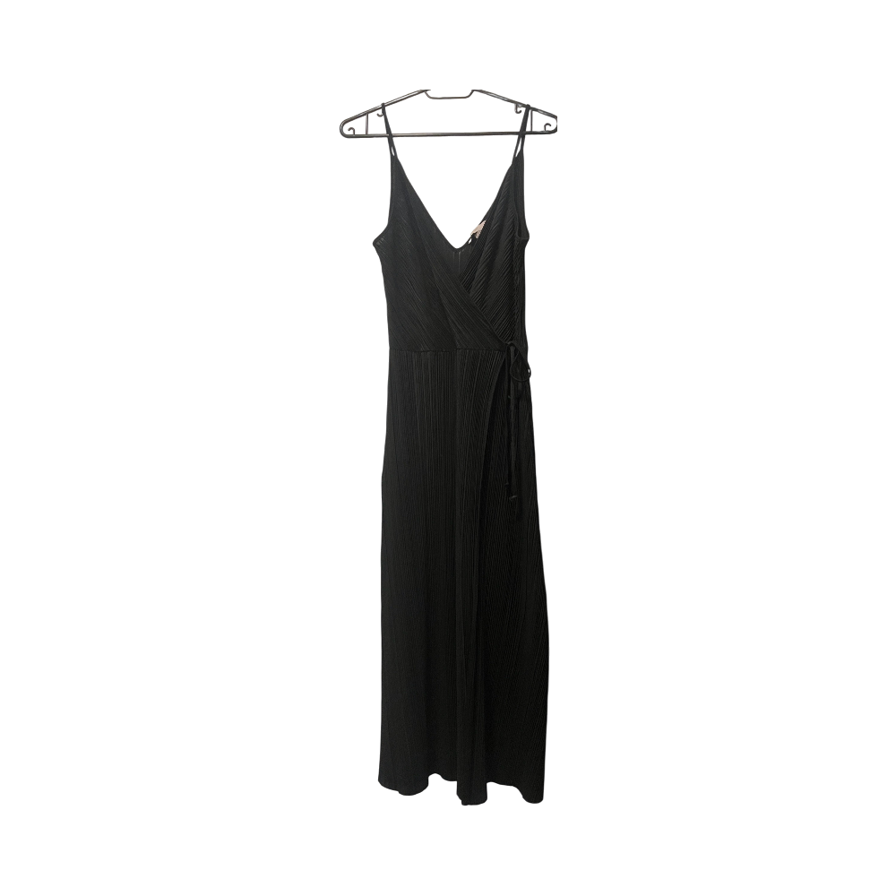 Hyvässä kunnossa oleva pitkä musta mekko.