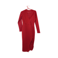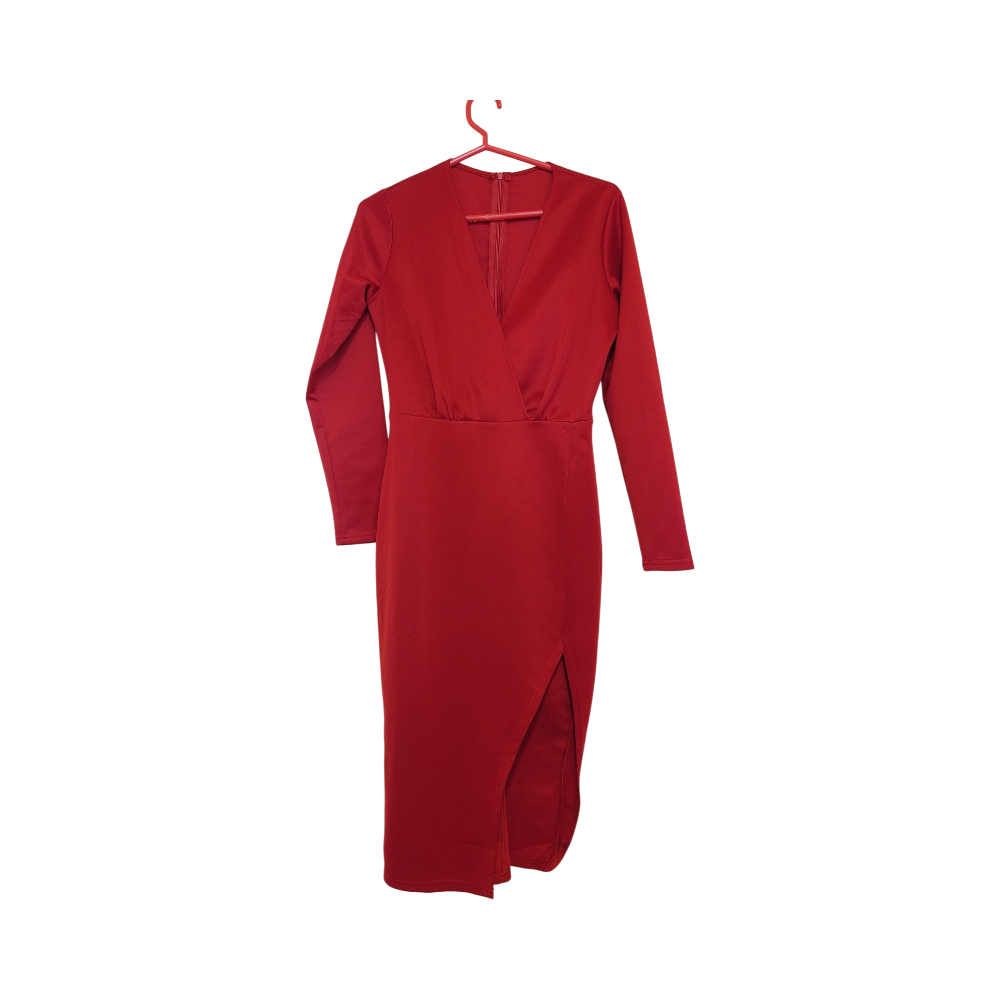 Pitkähihainen vartaloa myötäilevä mekko halkiolla. Mekkoon kuuluu kaunis vyö. Joustavaa materiaalia sopii 36-40 kokoiselle. Käyttämätön.
