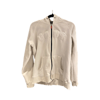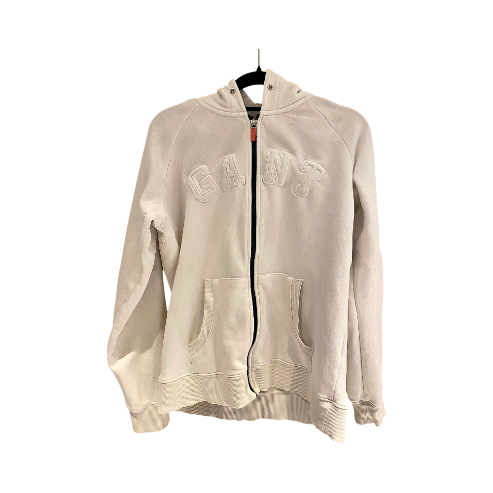 Vetoketjullinen huppari koossa L. En havainnut käytön jälkiä. Hupussa ei nauhoja, mutta en muista että tässä hupparissa niitä olisi ollut ollenkaan.