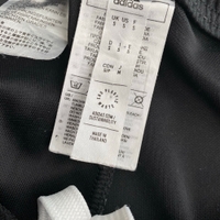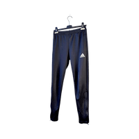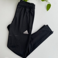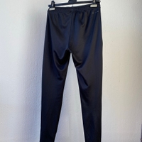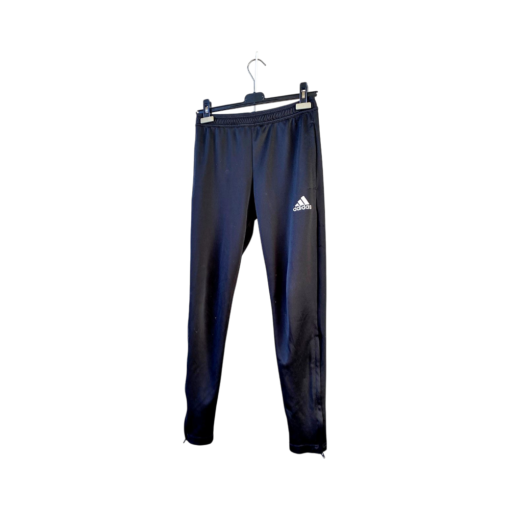 Adidas mustat verkkarit. Koko S, vyötärön leveys 35 cm ja pituus 94 cm. Malli suht slimmi/tyköistuva. Vyötäröllä joustovaraa, ja lahkeissa vetoketjut. Ainoana vikana pari langanvetoa (viimeinen kuva).