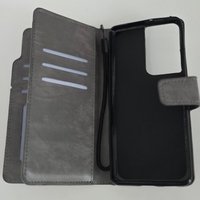 Kotelossa korttipaikat, nappikiinnitys ja rannelenkki. Uusi, käyttämätön. Harmaa väri.