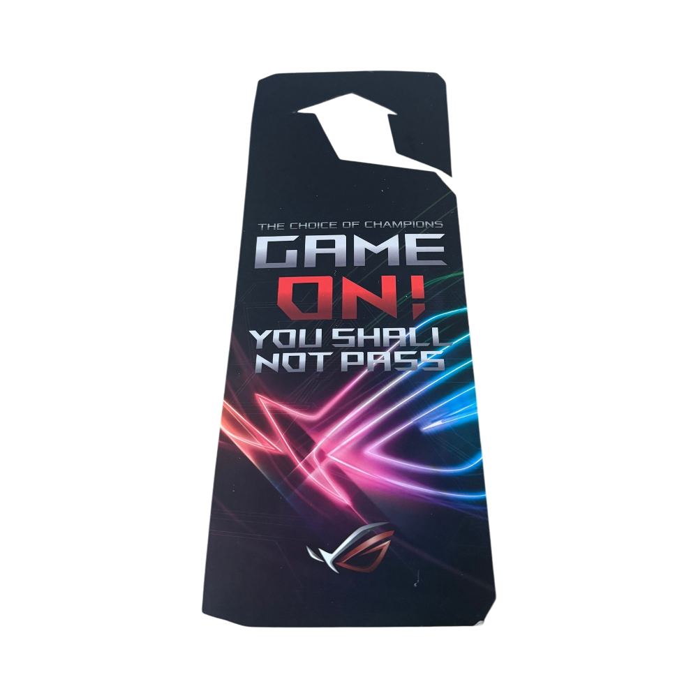Hotellityylinen kyltti ovenkahvaan pelaajalle