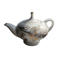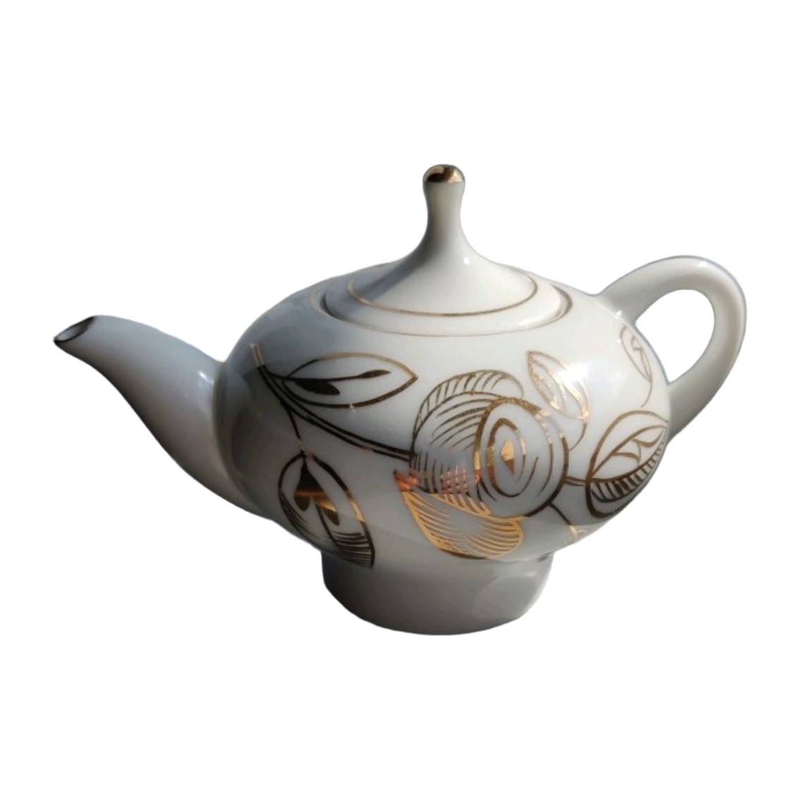 Kaunis vanha pieni teekannu. Korkeus n. 9 cm kansineen. Pituus noin 15 cm. Kunto moitteeton. Kaunis kultainen kukkakuvio. Leimattu, Lomonosov. #vintage