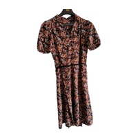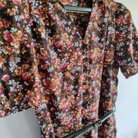Kaunis kukkakuosinen vintage mekko. Ohutta ilmavaa materiaalia. Napit edessä vyötärölle asti. Musta pohjaväri, punaisia ja sinisiä kukkia. Kunto erinomainen. Ei koko eikä materiaalitietoja. Arviosta S koko Kai-kai 49 cm, pituus niskasta helmaan n. 114 cm, vyötärön leveys noin 42 cm. Kangas ei jousta. Ensimmäinen ilmainen toimitus HE7274. Musta ohut vyö kaupan päälle. #vintage #vintagestyle #spring #floral #dress