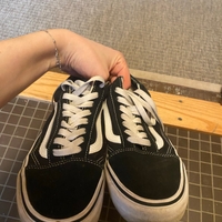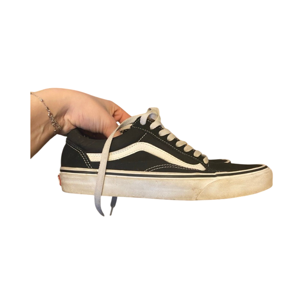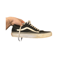 Classic low-top skate shoes with white side stripe, lightly worn.
