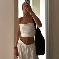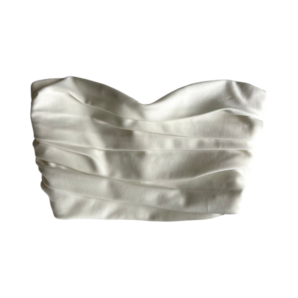 Zaran söpö valkoinen korsettitoppi, jossa volyymia rypytyksestä. Sivussa vetoketju. Kaikki laput leikattu irti, mutta koko S ja materiaali on jotain synteettistä. Jotain aika huomaamatonta jälkeä toisessa sivussa, ei näy käytössä, merkitty viimeiseen kuvaan.