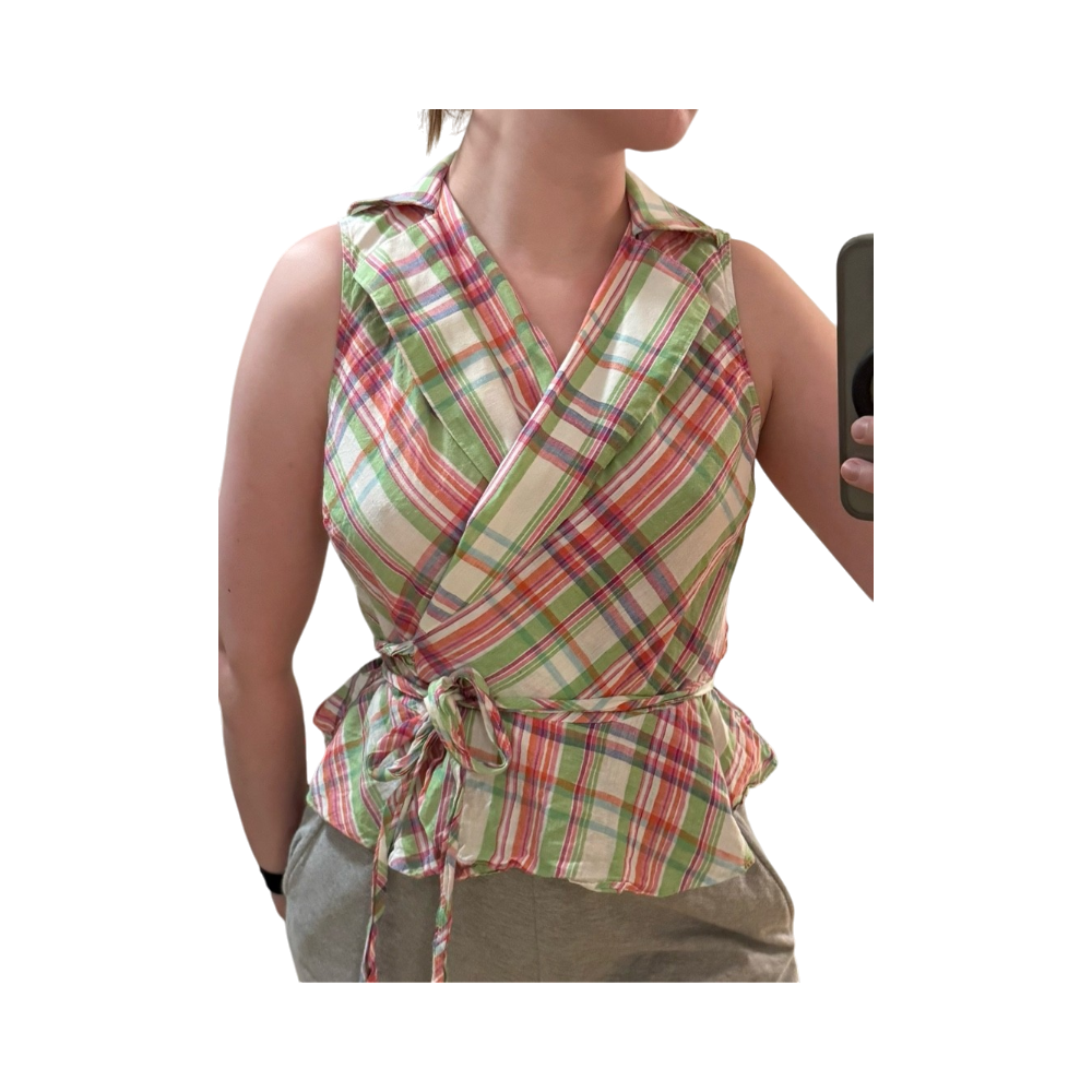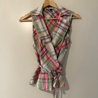 Ralph Lauren ruudullinen kietaisutoppi, koko S. Puuvilla-pellava-sekoitetta, pesulappu leikattu irti