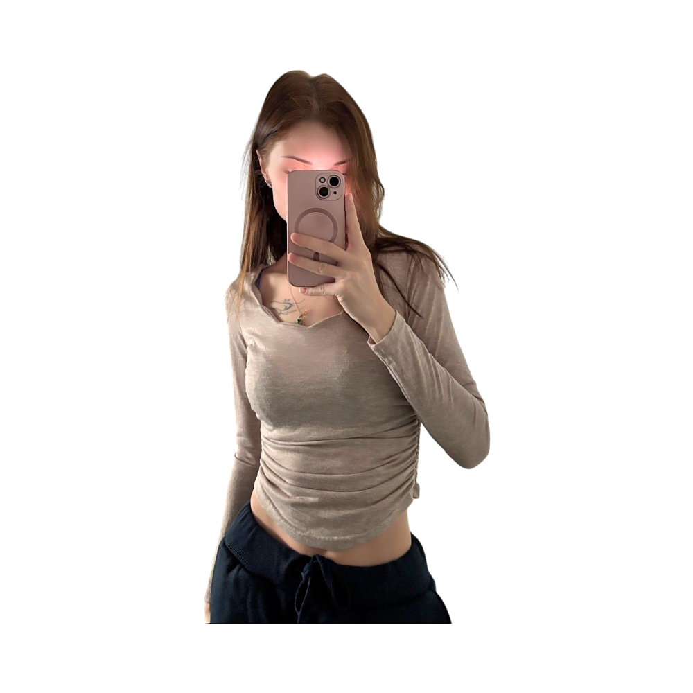 Hienosti muotoiltu pitkähihainen, hyvässä kunnossa.