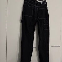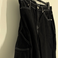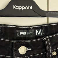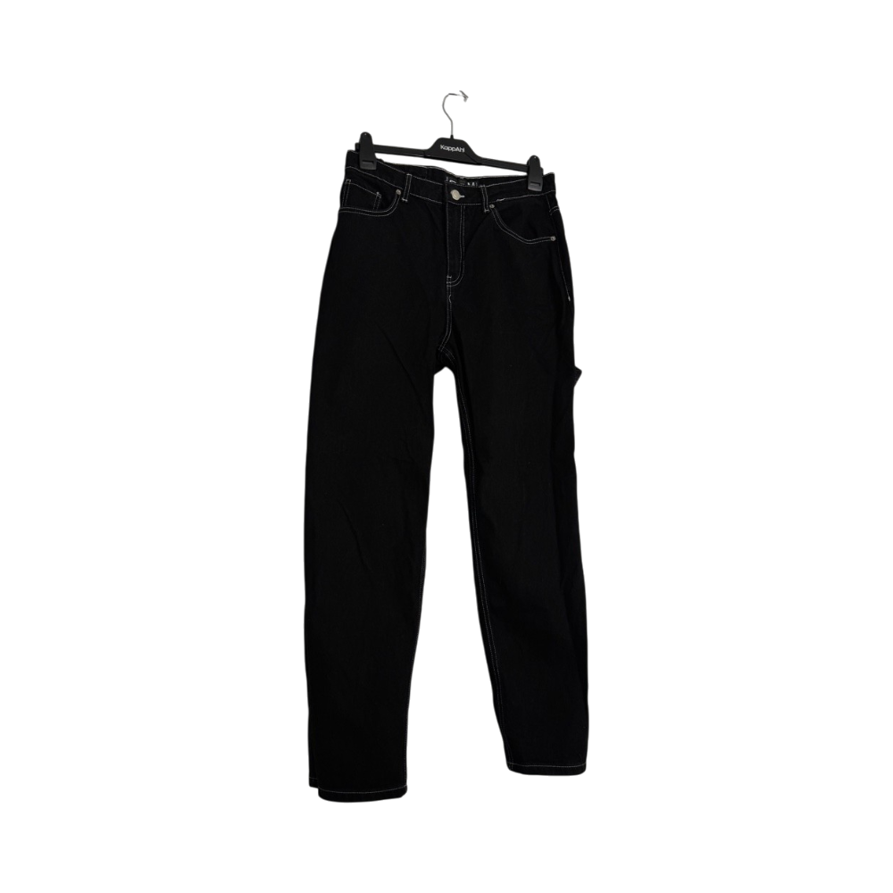 Mustat farkut valkoisilla kontrastisaumoilla. Käyttämättömät, koko M 🙂