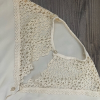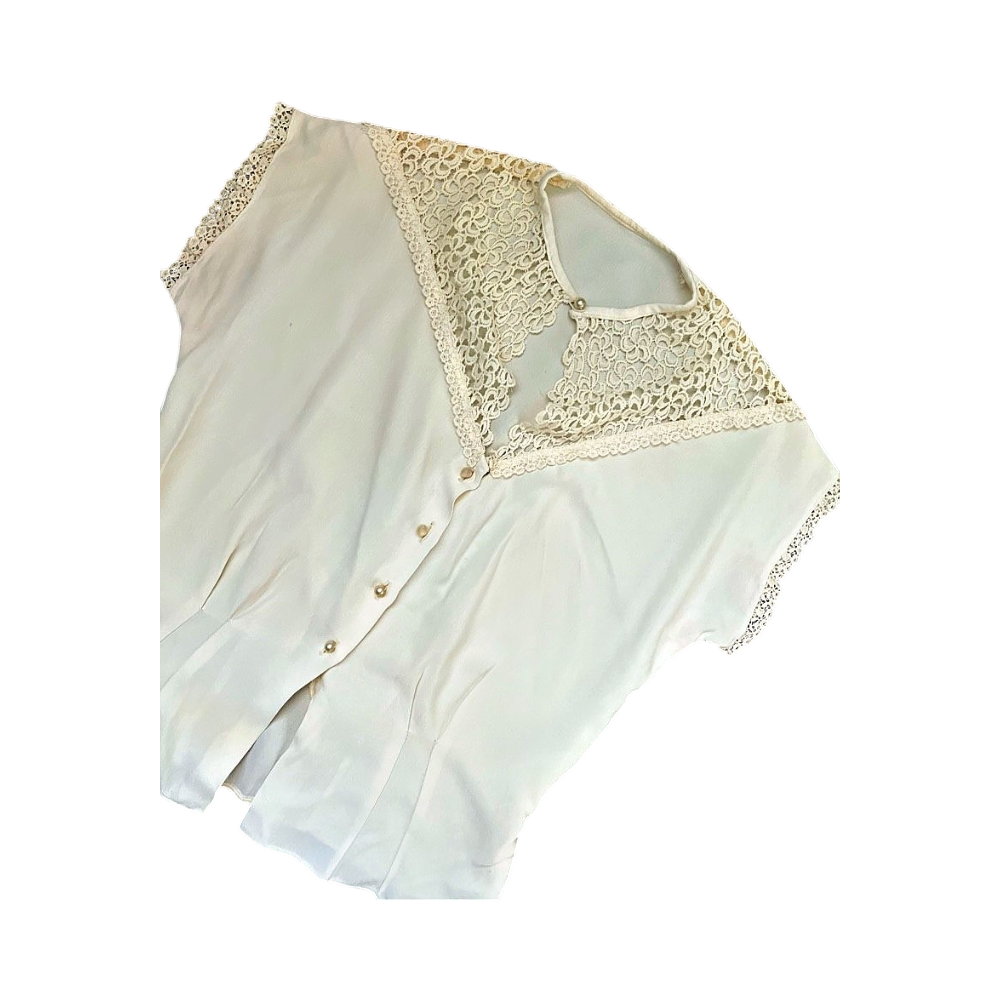 Suloinen Vintage paita kauniilla pitsikauluksella. Vastaa arviolta kokoa s, pituus 54cm ja kai kai mitta 46cm. Hyvässä kunnossa