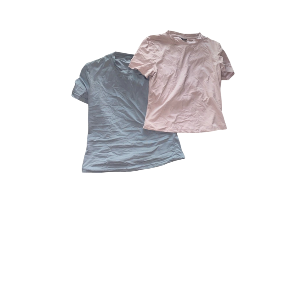 Vaaleanpunainen ja harmaa peruspaita, lyhythihainen, koko pieni/medium.